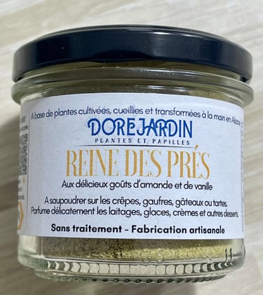 La reine des prés se saupoudre sur les crêpes, les gâteaux, se mélange dans les laitages et les crèmes. Aux délicieux goûts d'amande et de vanille, elle aura une place de choix dans tous vos desserts