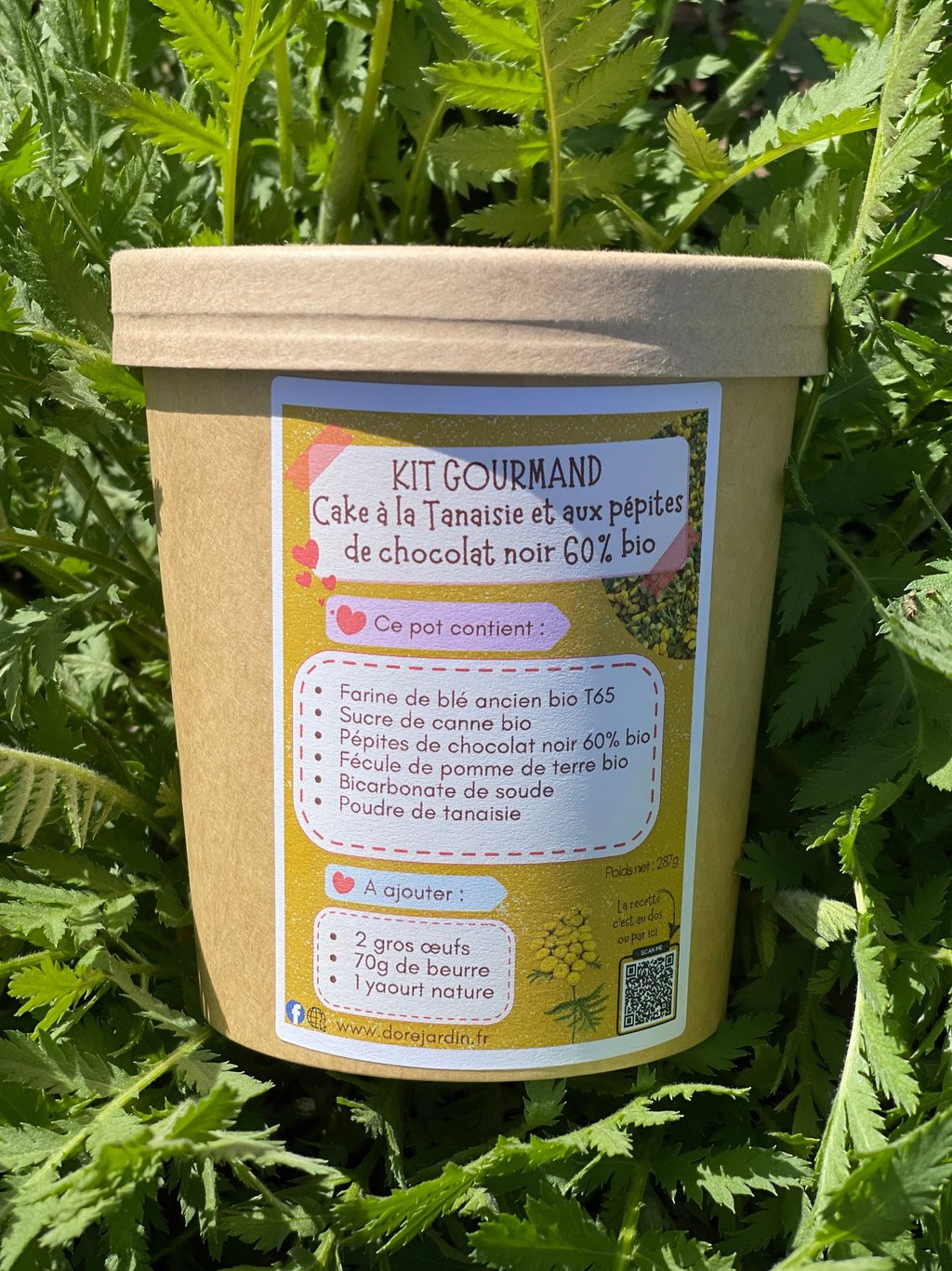 Réalisez, à la maison, un cake à la tanaisie et aux pépites de chocolat noir bio 60% avec ce kit dans un pot en carton kraft 100% recyclable. Régalez-vous avec ce gâteau gourmand et savoureux où vous apprécierez le "mariage d'amour" entre la tanaisie et le chocolat. Personnellement, je double les quantités et hop dans un grand moule à cake. Puis, je n’hésite pas à congeler la moitié du gâteau, un délice ! La poudre de tanaisie est également proposée en verrine de 40g (rubrique aromate) pour les plus grands gourmands.