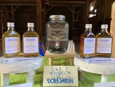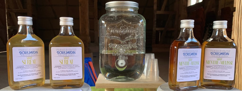 Sirops artisanaux, composés de plantes fraîches cueillies à la main avec soin, du sucre de betterave bio et français et de l'eau filtrée.