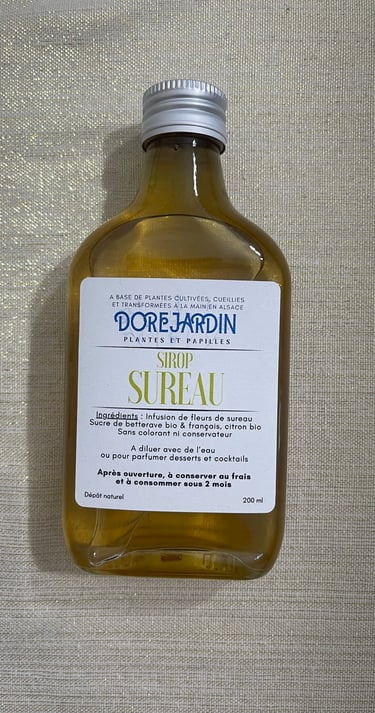 Ingrédients : Fleurs de sureau noir, eau filtrée, sucre de betterave bio français, citron bio