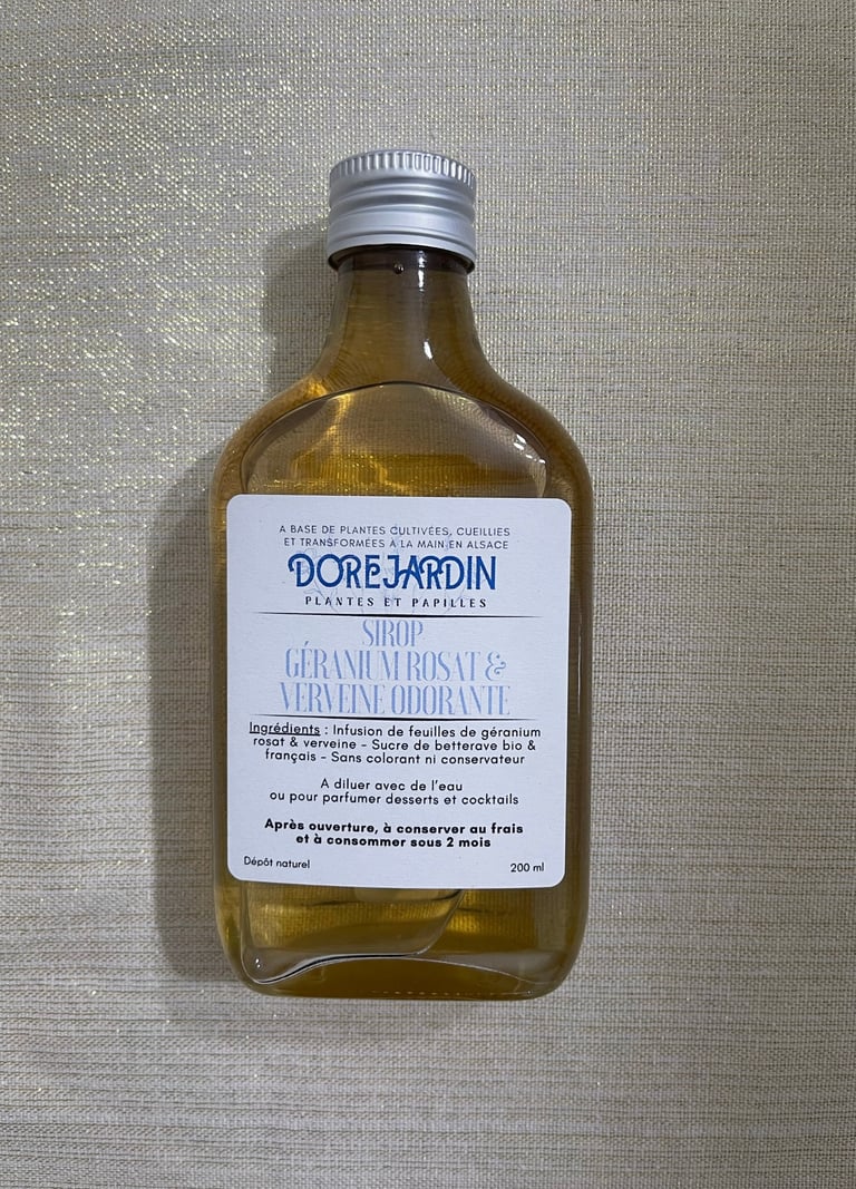 Ingrédients : Feuilles de géranium rosat et géranium bonbon, eau filtrée, sucre de betterave bio français