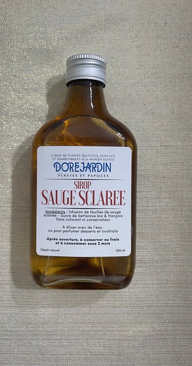 Ingrédients : Feuilles de sauge sclarée, eau filtrée, sucre de betterave bio français