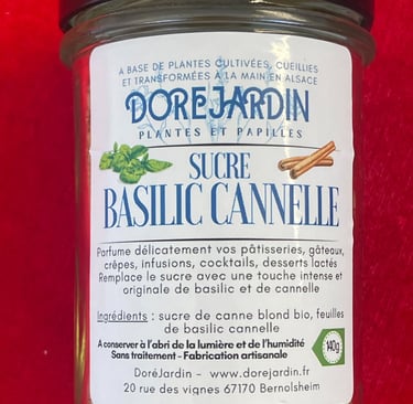 Sucre aromatisé unique, où la fraîcheur végétale du basilic rencontre la chaleur réconfortante de la cannelle. Subtilement parfumée, cette saveur sublime aussi bien vos desserts que vos boissons chaudes. Idéal pour saupoudrer sur des fruits frais, parfumer un yaourt, relever une tisane ou apporter une note surprenante à vos pâtisseries maison. Un sucre délicat et raffiné qui éveille les papilles et invite au voyage