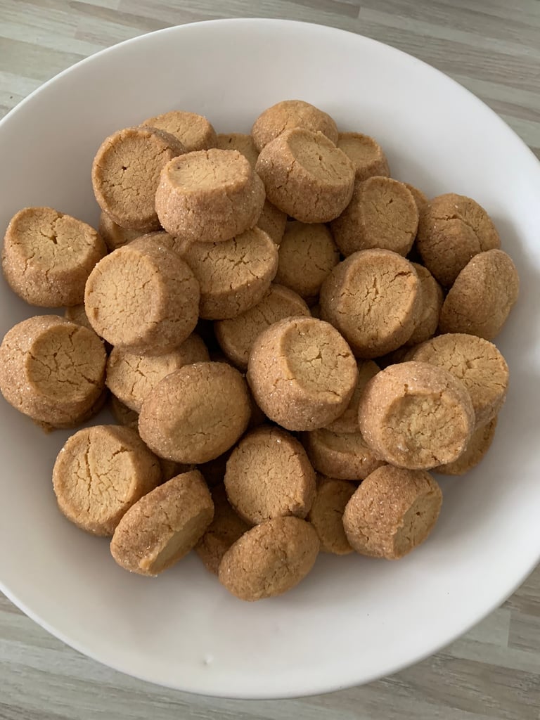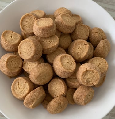 Ingrédients : Amandes bio, sucre roux bio, beurre doux bio, miel local, basilic cannelle, fleur de sel