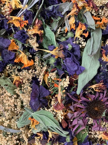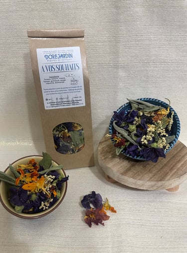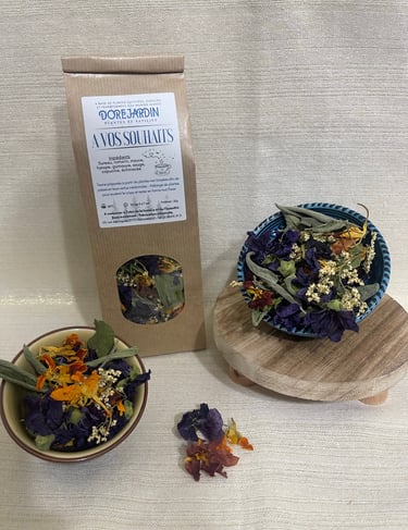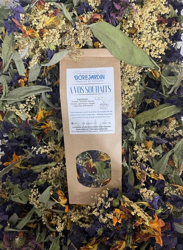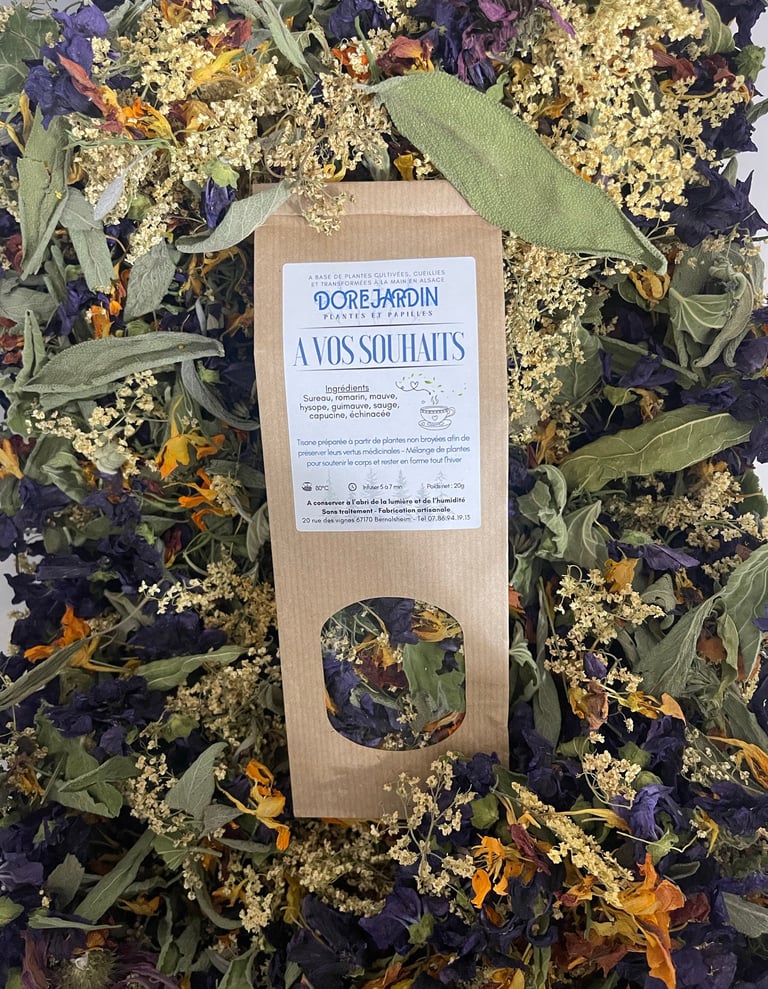 Composition : Fleur de sureau, romarin, mauve, hysope, échinacée, guimauve, sauge officinale, capucine