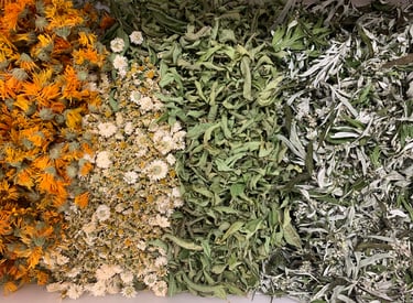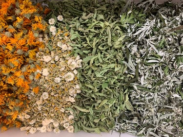 Composition : Achillée millefeuille, sauge officinale, armoise, calendula, roses, verveine odorante