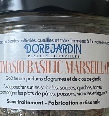 Tous les gomasios sont proposés dans une verrine en verre avec un poids net de 50 gr - Tarif : 6€ (consigne : 20 cents)